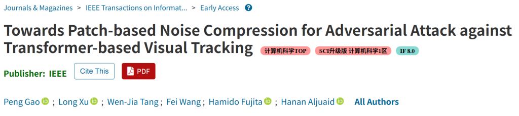 学术论文“Towards Patch-based Noise Compression for Adversarial Attack against Transformer-based Visual Tracking”。禁忌书屋