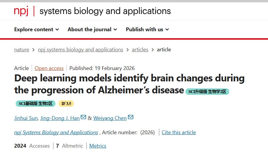 为该论文第一完成单位,2022级研究生孙金辉为论文第一作者,陈维洋副教授和北京大学韩敬东教授为论文共同通讯作者。npj Systems Biology and Applications最新影响因子为3.5,是中科院二区以及JCR一区期刊。