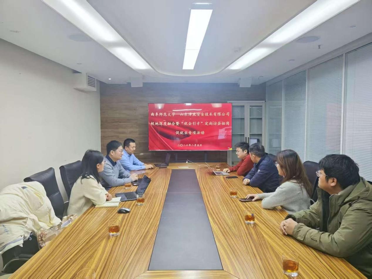 院长王茂励、党委副书记范瑞红、副院长马旭、专任课教师张睿、22级学生代表张昊冉赴山东泽鹿安全技术有限公司,开展校地深度融合暨“优企引才”定向访企拓岗促就业专项活动。
