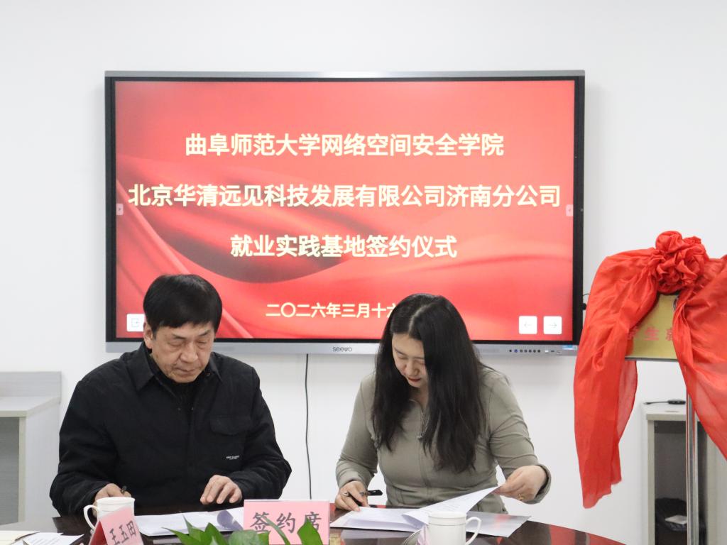 会议伊始,学院领导全面介绍了学院学科建设、师资力量、人才培养特色及发展规划,重点展示了在网络空间安全领域取得的科研成果与育人成效,强调了学院服务国家网络安全战略、培养应用型高素质人才的办学定位。随后,学院与北京华清远见科技发展有限公司济南分公司举行就业实践基地签约与揭牌仪式,为学生搭建更广阔的就业实践平台。紧接着,学院与北京华清远见科技发展有限公司济南分公司、北京千锋互联科技有限公司、江苏传智播客教育科技股份有限公司三家企业依次举行教学实习基地签约与揭牌仪式,标志着双方在课程共建、实习实训、师资互聘、科研协同等方面的合作将迈向更深层次、更广领域。最后,学院与各企业负责人就校企合作具体事宜深入洽谈交流,在协同制定人才培养目标、联合开展技术公关等方面达成多项共识。