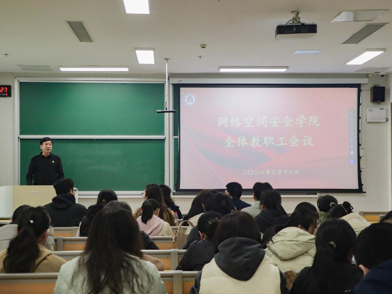 会上,田云飞全面总结了学院上一阶段在人才培养、学科建设、科研教研、学生管理、就业服务等方面取得的阶段性成果,客观分析了当前学院发展面临的机遇与挑战,并对新学期重点工作进行部署安排。王茂励围绕网络空间安全专业建设、师资队伍培养、校企合作深化、毕业生高质量就业等核心任务,明确了具体工作要求与推进举措,为学院后续发展划定了清晰路径。