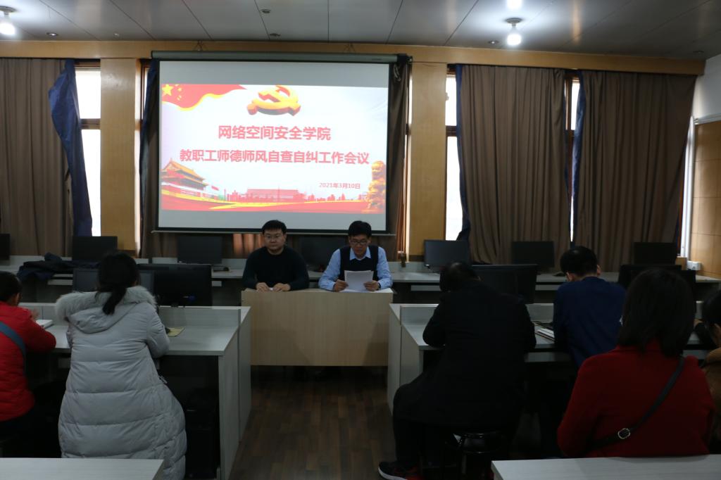 召开全体教职工会议。学院党委书记田云飞主持会议,就进一步加强师德师风建设,推动师德建设常态化长效化,开展师德师风自查自纠工作做出强调。院长王茂励作《抓落实,求突破》工作报告。