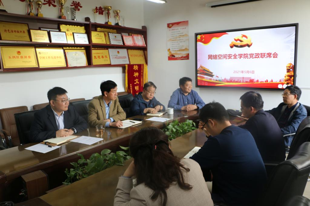 召开党政联席会议,就校长与本科生座谈交流反映的问题,进行落实、布置。学院党政领导班子成员、系主任、办公室、学团、教务等人员参加会议。学院党委书记田云飞主持会议。