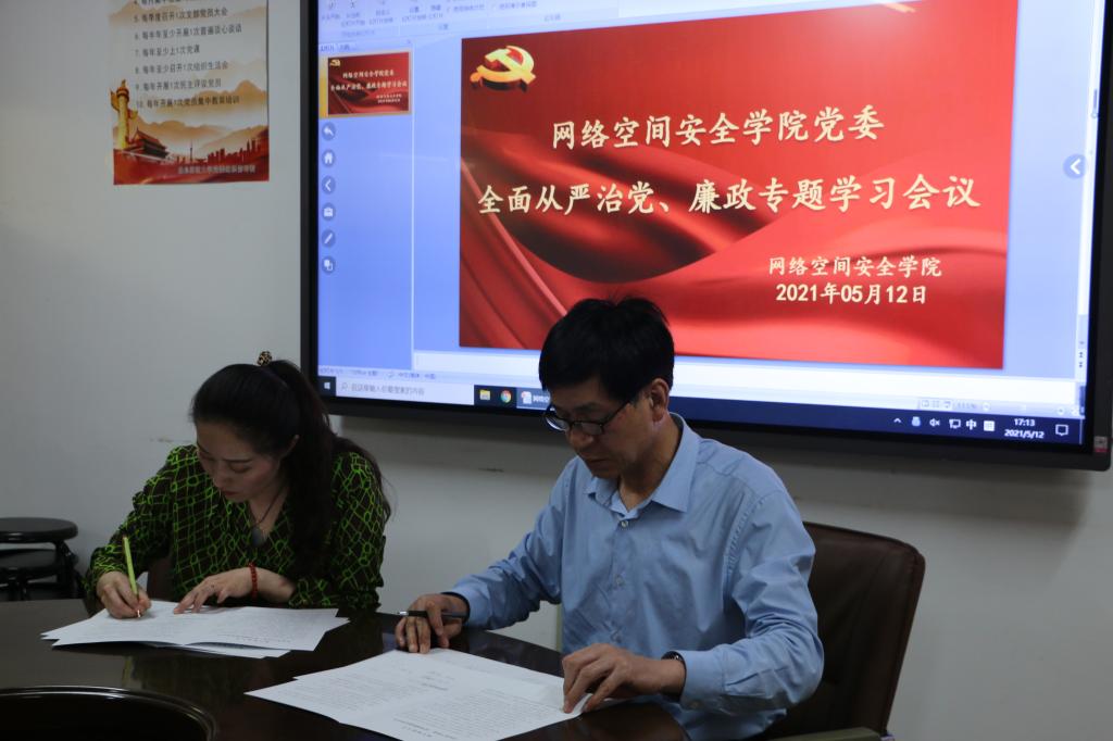 田云飞、王茂励为班子成员发放落实全面从严治党、党风廉政建设“一岗双责”责任清单。田云飞要求,要压实政治责任,坚持问题导向,对照要求,清醒认识、科学把握学院目前全面从严治党存在的薄弱环节,夯实全面从严治党引领保障地位,确保“十四五”开好局、起好步。