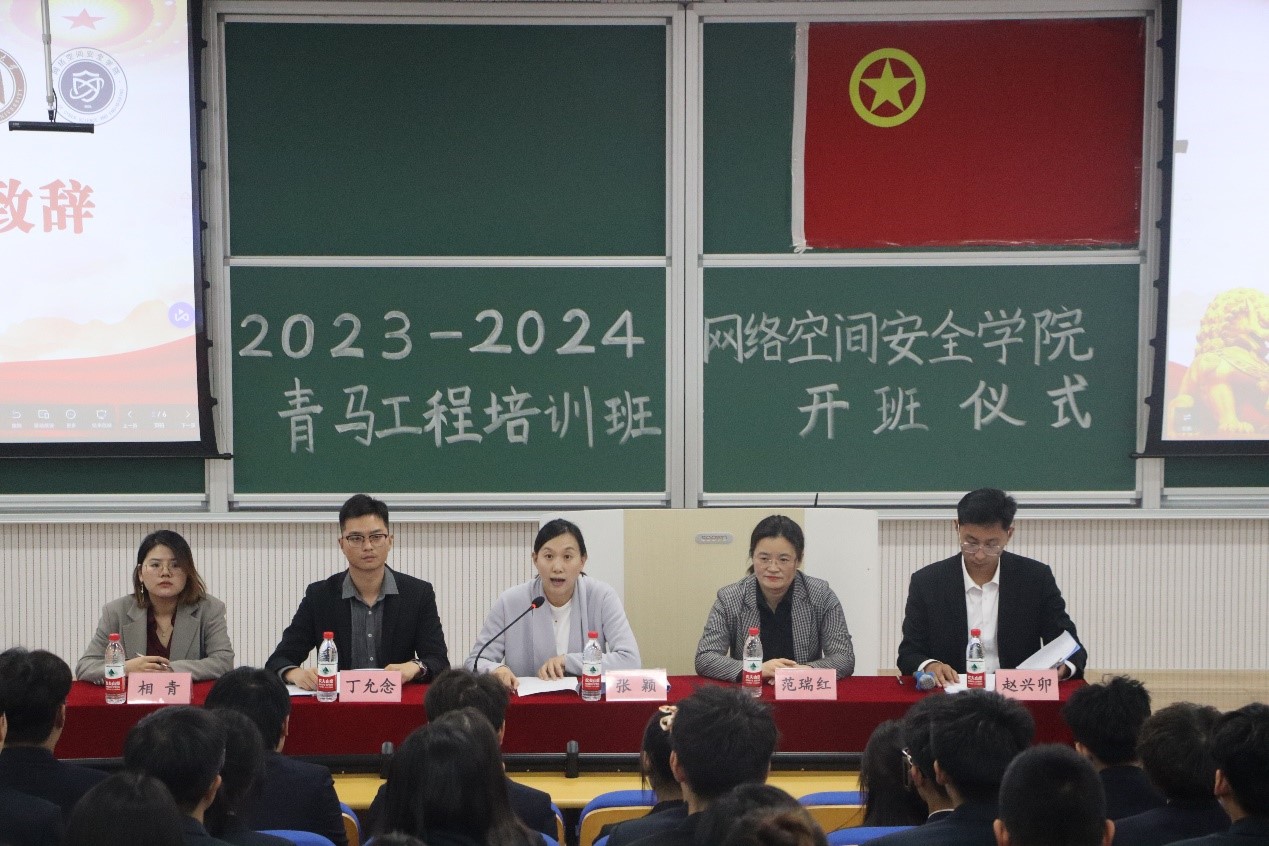 2023-2024学年“青马工程”培训计划,对组织分班、培训内容、培训要求等方面进行详细阐述,并勉励学生勤奋刻苦学习、坚持知行合一,做有理想、有本领、有担当的新时代中国青年。最后,2022级物联网工程班团支书刘建新作为学员代表进行发言,他表示青年学者要深入了解中国特色社会主义的理论体系和实践经验,通过实践来检验理论,提高自己的实践能力和组织策划能力,为党和人民事业贡献力量。