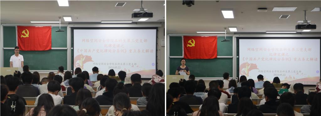 各本科生党支部召开的纪律党课,对《中国共产党纪律处分条例》的部分重点条文进行了解读,使党员同志对党的纪律要求有了更加清晰明确的认识,对进一步规范党员同志的举止行为,促进党员同志廉洁自律具有重要意义。