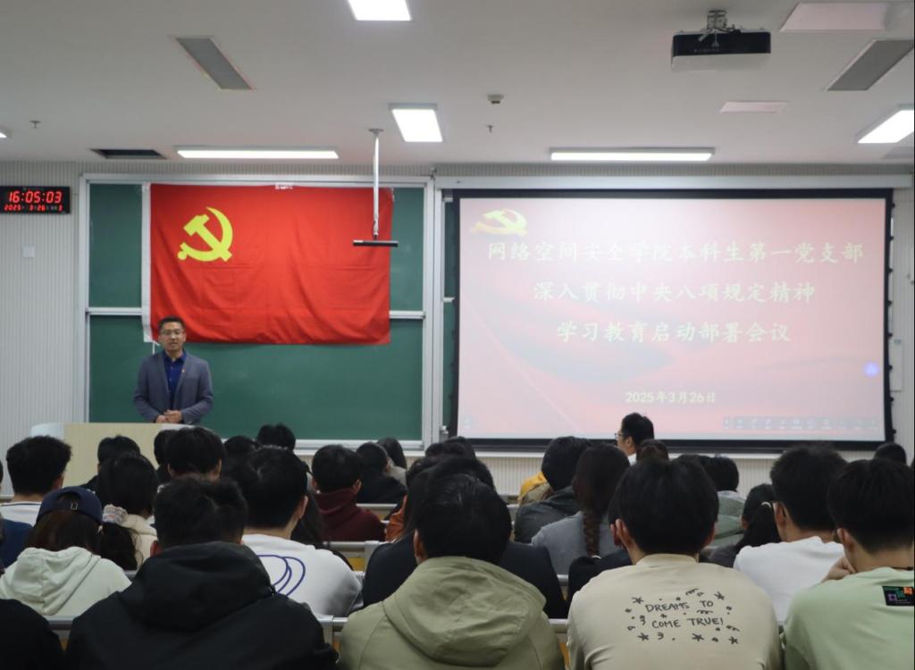 院讯(通讯员:武玉龙 张楠 摄影:于航舟)3月26日下午16:00,网络安全学院各本科生党支部深入贯彻中央八项规定精神学习教育启动部署会议于格物楼B107召开。本科生第一、二、三党支部书记武玉龙、丁允念、于媚媛分别主持了各党支部的启动部署会议,各党支部党员参会。