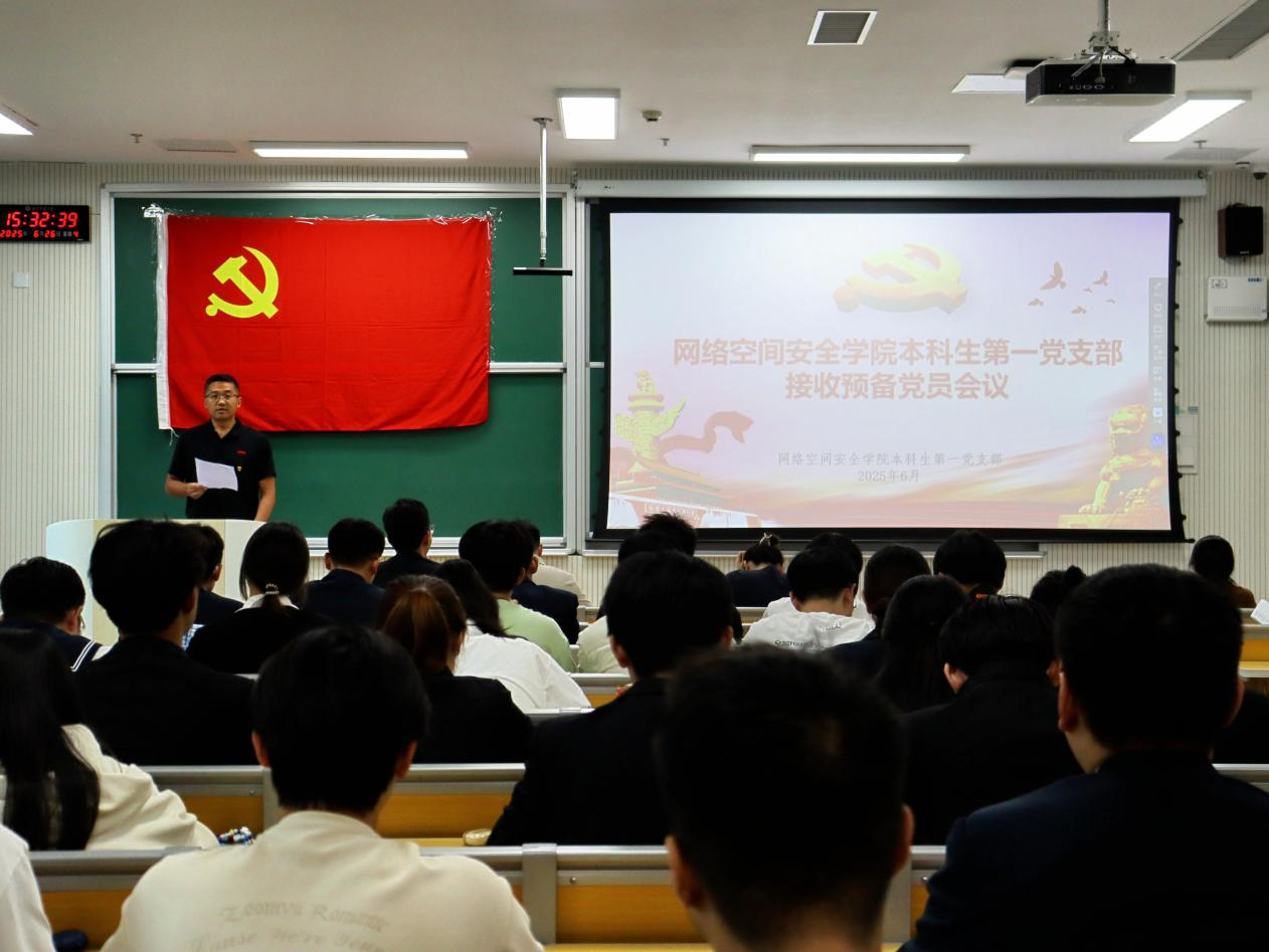 各本科生党支部第一议题学习了习近平总书记对精神文明建设工作作出的重要指示。随后,各本科生党支部分别召开了接收预备党员会议。全体党员同志起立,奏唱国际歌。发展对象依次上台宣读入党志愿书。在本科生第一党支部会议中,相青、赵兴卯两位老师介绍了党员发展对象的任职经历、学习成绩等基本情况。经组织考察,以上同志政审合格,武玉龙代表支委会同意将以上同志接收为预备党员。大会遵循无记名计票原则,经全体与会党员商讨,一致同意接收程名等同志为中共预备党员。
