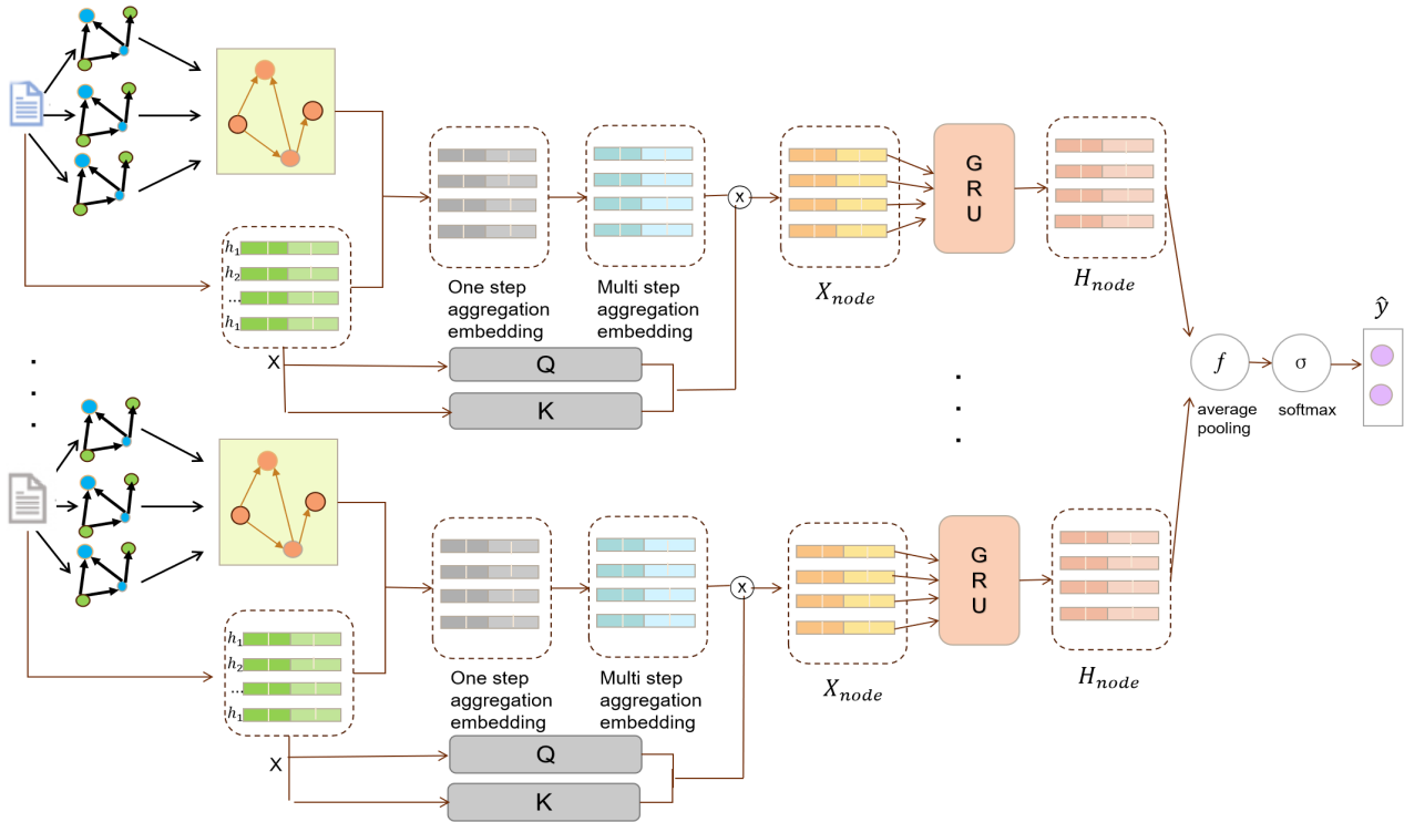 文本分类任务的重点主要在于文本特征提取部分,因此文本信息的充分提取是文本分类任务的关键步骤。然而,目前在文本分类上信息并没有得到充分利用。因此,充分地文本信息表示和学习是一个是一个极其重要的话题。在研究中,提出了一种新的基于多显示图注意力网络(MDGAT)模型,拟解决文本信息捕获不充分以及单词之间高阶交互等问题。MDGAT包括三个主要组件多显示图的构建、图级表示学习、归纳文本分类。首先,构建了多种显示图,从语法、语义、句法、主题等多个角度充分提取文本中的信息。其次,为有效地聚合图结构信息,提出多步聚合方法分别针对节点内部的重要程度、节点之间的相关度进行信息聚合。同时使用门控循环单元聚合上下文信息,有效地实现图结构到序列结构的转换,维护文本的顺序结构。此外,针对于各种基准数据集,大量的实验结果证明了本方法的优越性能。本次研究在5个基准数据上与其他模型进行对比实验,结果表明MDGAT模型在文本分类任务上的卓越性能。