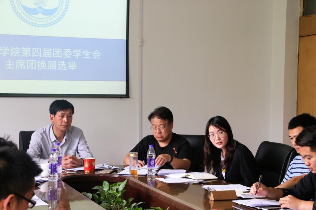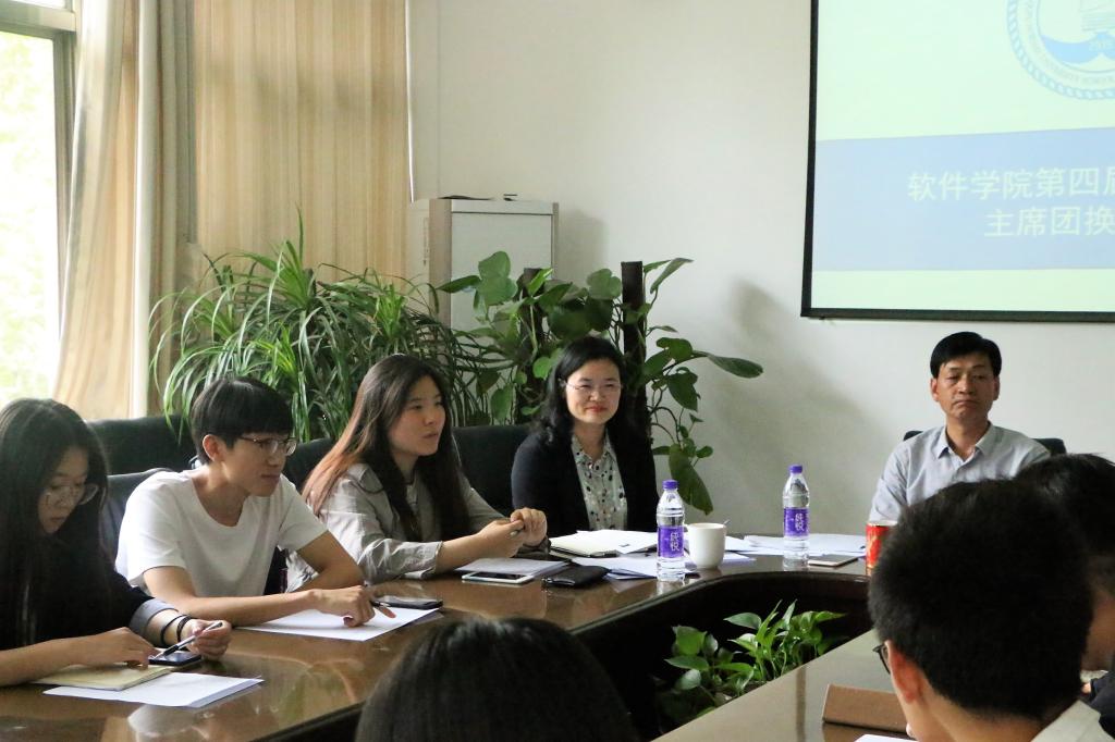 5 月11日下午三点半,软件学院第四届团委学生会主席团竞岗答辩在学院会议室成功举办。软件学院党委书记田云飞、党委副书记田凯、团委书记范瑞红、辅导员郑凤华及第三届主席团成员出席本次答辩并任评委。