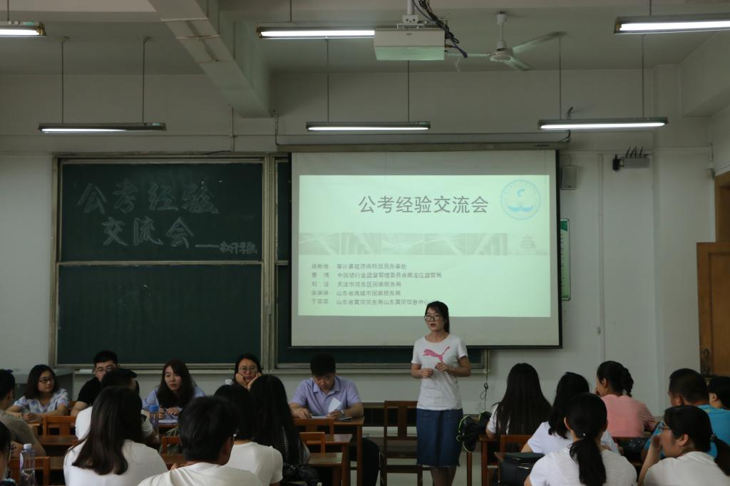 师哥师姐从网申、笔试、面试三大方面为同学们作细致分析,结合自身经历指出在备考过程中的注意事项,强调复习方法的重要性。他们细致入微紧扣实际的讲解赢得了同学们阵阵掌声。同学们根据自身情况提出关于考公方面的问题和疑惑,师哥师姐耐心解答。