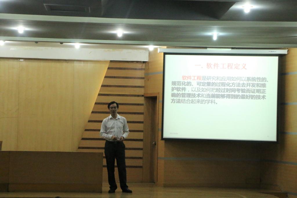 学工处王志华教授,软件学院倪建成教授为新生做始业教育报告。软件学院党委书记田云飞、党委副书记田凯出席报告会。