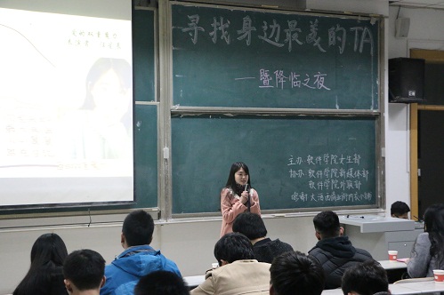 软件学院女生部主办的“寻找身边最美的Ta”决赛暨男神女神降临之夜在综合楼举办。软件学院学生会会长刘孝迎、副主席周瑞鹏、何梦菡等学生干部出席观看比赛并担任此次活动评委。