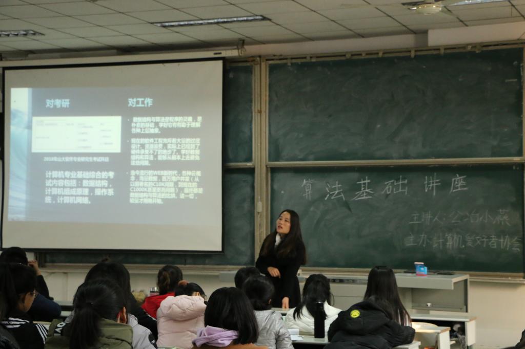 12月2日下午,由软件学院计算机爱好者协会主办的算法基础讲座在综合楼106教室召开。本次讲座由公冶小燕老师主讲,软件学院学生积极参与。