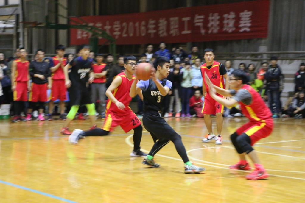 本次比赛的对阵双方为软件学院与数学科学学院。随着裁判员哨声响起,上半场比赛正式开始。软件学院队员们在赛场上稳守强攻、默契配合、全力以赴、越战越勇,在前两节比赛结束时,软件学院代表队以21:18取得领先优势。下半场比赛时,队员们迅速投入比赛状态,个个雄姿英发,在场上你争我夺,一轮轮地抢球、投球,动作潇洒,帅气利索;一次次扣人心弦的上篮得分赢得了观众们阵阵喝彩声和掌声。双方争夺异常激烈,比赛进行得如火如荼,赛场上队员们积极投入,顽强拼搏,全力以赴,赛场下拉拉队为他们呐喊助威。经过激烈的角逐,软件学院以46:41的比分赢得本届大学生篮球赛的冠军。