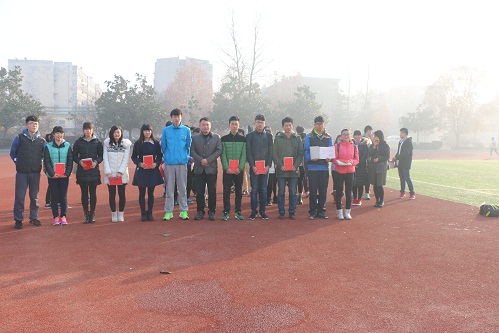 杨书记总结了2015年冬训的训练工作,对在冬训上取得优异成绩的同学表示祝贺,对运动员们积极的参与意识和良好的拼搏精神给予肯定和鼓励。随后,杨书记为“一二九”环校跑和冬训中表现优异的运动员颁奖,并希望运动员们再接再厉,在以后的比赛中取得更优异的成绩。为了感谢运动员们的努力付出,在各队队长的带领下发放了奖品并进行亲切的慰问。此次冬训表彰大会在一片欢声笑语中圆满结束。
