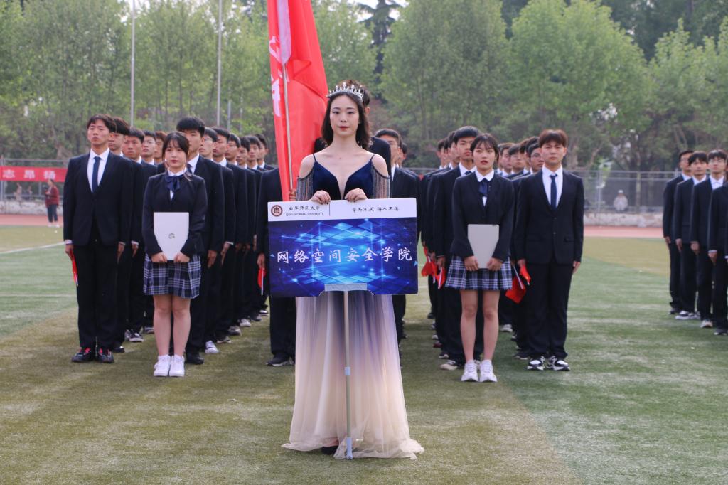 方队阔步向前,精神抖擞地走过主席台,昂扬向上、朝气蓬勃的精神面貌油然而生。在庄严的氛围下,国歌声起,全体师生起立行注目礼,国旗缓缓升起,运动会在各代表的宣誓下正式开始。