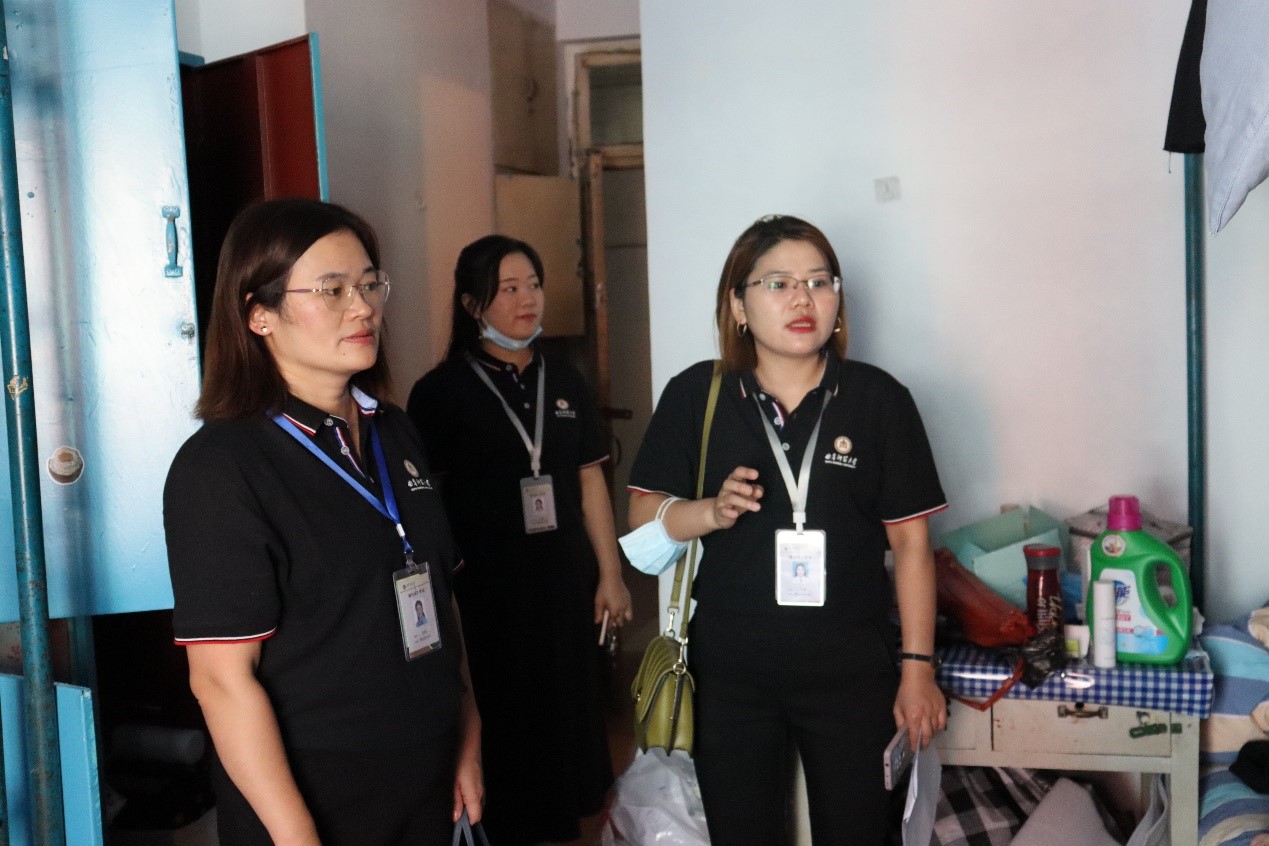 党委副书记范瑞红,团委书记丁允念,辅导员洪亚玲、相青、于媚媛前往2022级新生宿舍慰问新生。