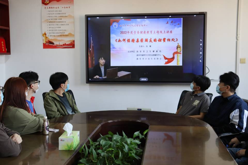 心理健康部组织部分2022级学生于学院410会议室观看“2022年度青春健康教育”主题线上直播。本次直播由曲阜市卫健局、市计生协举办,济宁市计生协青春健康主持人、曲阜市中医院心理门诊主任张敏担任本次直播的主讲人。
