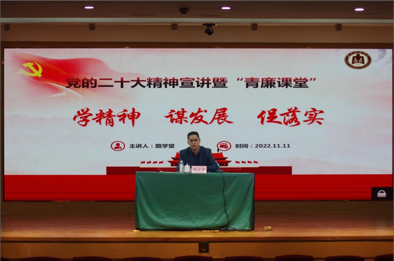 院讯(通讯员:武玉龙 郑加强 摄影:崔城豪)11月11日上午,学校纪委在孔子会堂举办学习贯彻党的二十大精神宣讲报告会暨“青廉课堂”第二课。学校党委常委、纪委书记、省监委驻校监察专员路学堂作宣讲报告,纪委副书记苏斌主持报告会。禁忌书屋