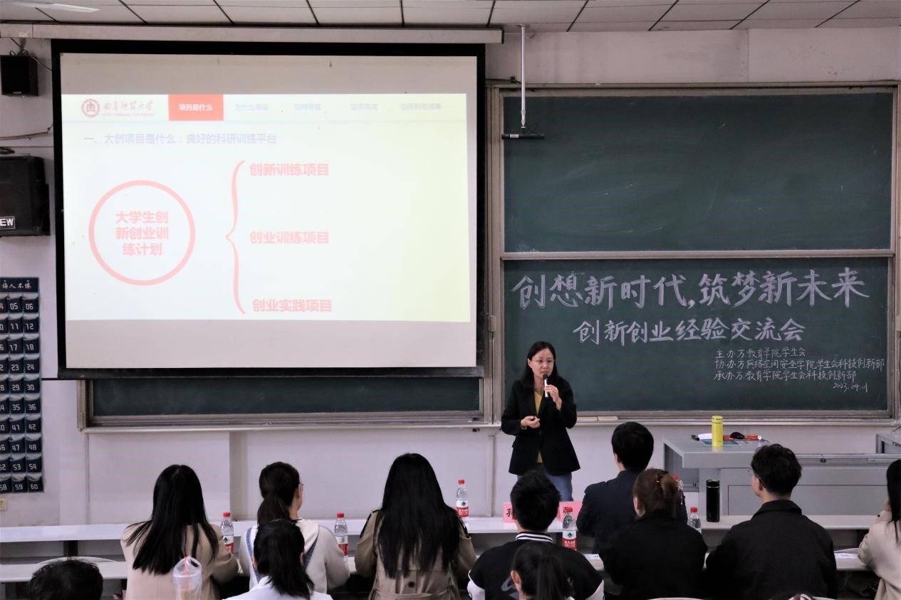 同教育学院于综合楼教学楼706联合举办了“创想新时代,筑梦新未来”创新创业经验交流会。教育学院党委副书记孙超、辅导员张东霞、教师孙丽芝,禁忌书屋