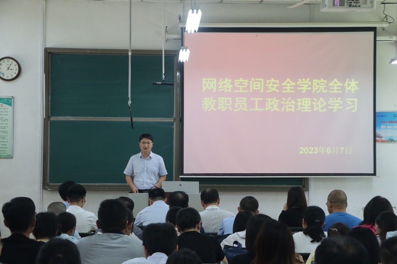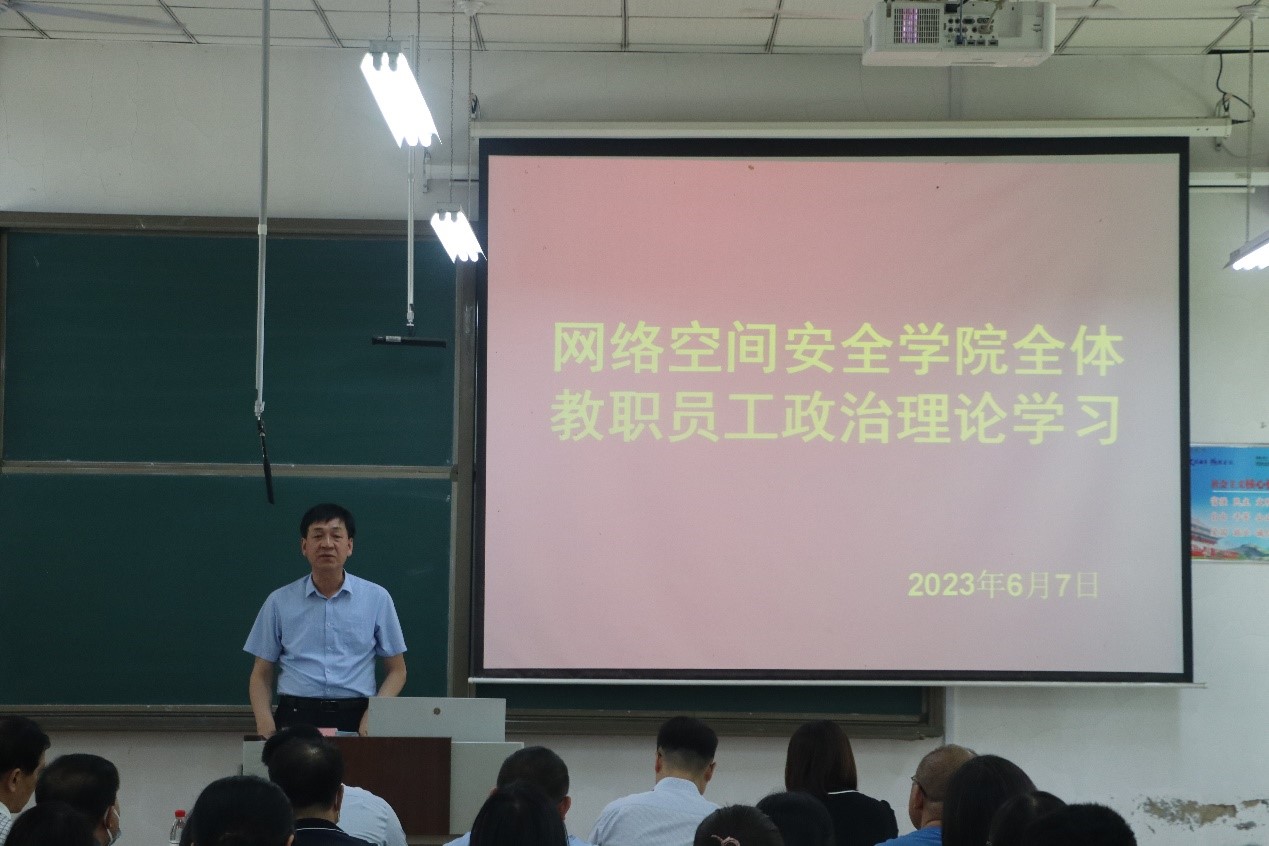 会议上,田云飞带领学院全体教职工一起学习了习近平总书记在中共中央政治局第五次集体学习时的重要讲话精神,重点学习领会了习近平总书记关于加快建设教育强国,为中华民族伟大复兴提供有力支撑的讲话内容。随后,王茂励提出我们教职工应提高政治站位、强化责任担当、坚持真抓实干,以服务中华民族伟大复兴为重要使命,全面学习贯彻习近平新时代中国特色社会主义思想,推动学院各项工作迈向新台阶。