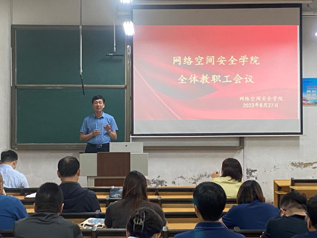会议进一步明确了学院新学期工作重点和发展方向,提振了全体教职工的工作热情。希望全体教职工坚守育人情怀,立足新起点,凝心聚力,锐意进取,固本培元强基础,守正创新谋发展,持续推进学院高质量内涵式发展,为实现中华民族伟大复兴的中国梦、实现高水平科技自立自强、建设网络强国培养高素质“芯”人才。