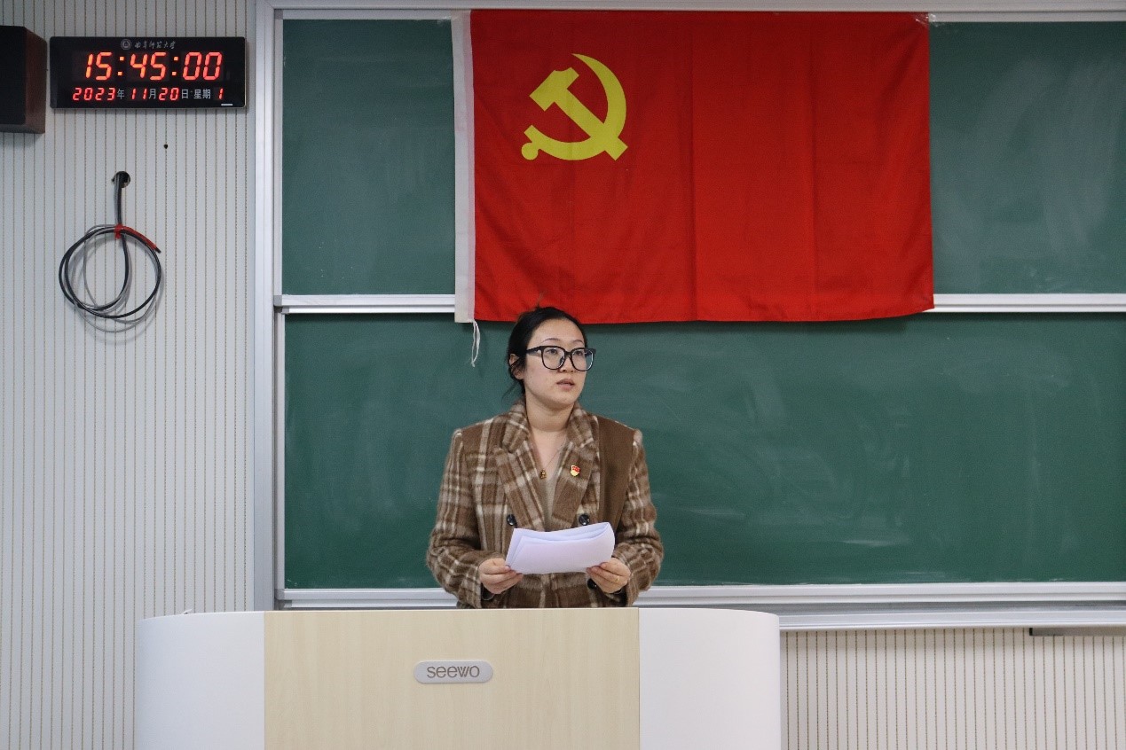 本次会议严格按照接收预备党员各项程序进行。武玉龙介绍了大会主要内容和具体流程。随后,全体党员同志起立,奏唱国际歌。公布完监票人和计票人后,发展对象逐一宣读了入党志愿书。武玉龙、于媚媛等老师介绍了发展对象的主要情况,并对其能否入党表明意见;同时报告了发展对象的政治审查、党内外群众意见等情况。最后,经与会党员无记名投票,马晓聪等同志的入党动机端正,对党的认识具体深刻,一致同意接收马晓聪等同志为中共预备党员。