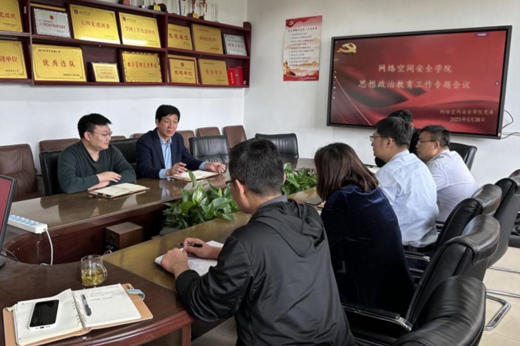 田云飞指出思想政治工作是学校各项工作的生命线。他强调全体教师要提高认识,统一思想,深入学习贯彻习近平总书记关于教育的重要论述,切实增强落实立德树人根本任务的紧迫感和责任感,坚持“五育”并举,引导和帮助学生树立正确的世界观、人生观、价值观;要加强精准思政建设,针对青年学生的思想特点,定期普查、动态感知学生思想和成长状况。