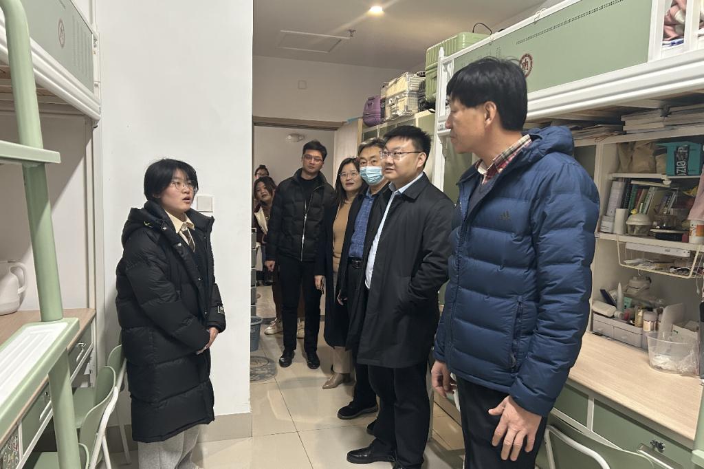 学生宿舍,实地走访、慰问学生。学院党委书记田云飞、院长王茂励、党委副书记范瑞红、副院长马旭及全体辅导员的陪同走访。