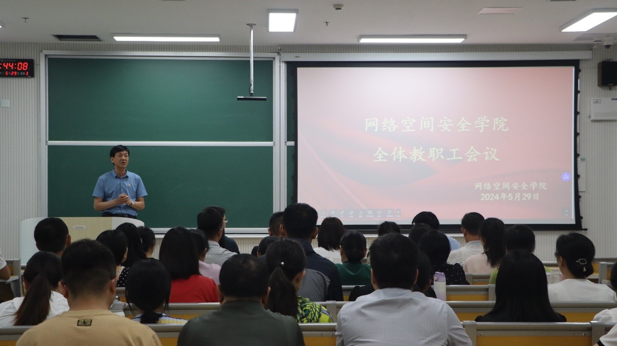 田云飞在师风师德建设、安全教育工作和就业工作三方面进行了部署。他指出,要以习近平新时代中国特色社会主义思想为指导,深入学习贯彻习近平总书记关于教育的重要论述和全国教育大会精神,把提高教师思想政治素质和职业道德水平摆在首要位置。安全工作方面,要加大安全知识的宣传力度,提高安全意识,特别是实验室、办公区域用电安全,确保安全教育全覆盖。田云飞强调,在就业形势严峻的当下,全体教职工要提高政治站位,重视就业工作,协同发力、共同促进2024届毕业生高质量就业。