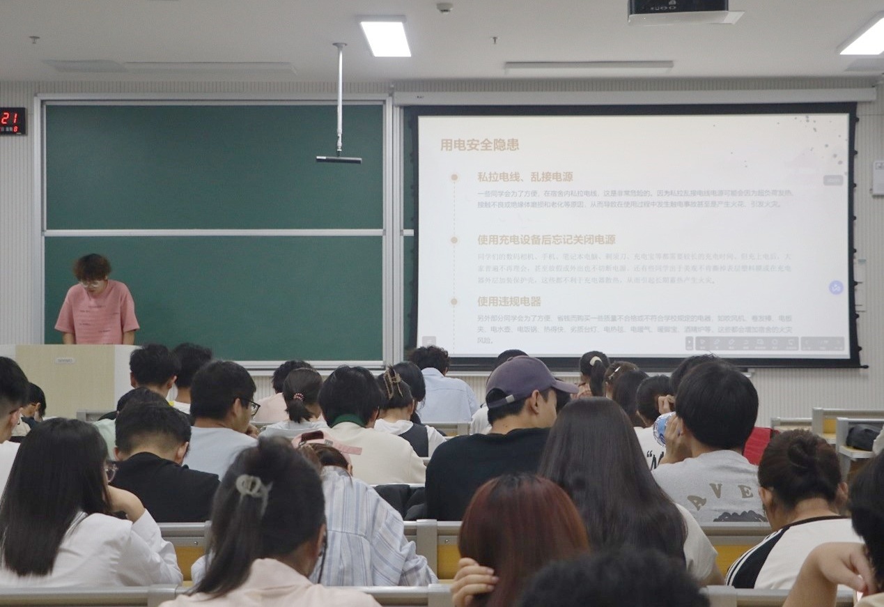 会议上,代顺程从用电、消防、卫生等方面介绍了宿舍安全知识以及常见的安全隐患问题,介绍了在火灾、触电、地震等情况下的自救与互救方法,他强调,各位宿卫委员及宿舍长要担起责任,时刻注意生活中的消防安全问题,增强舍员安全防范意识和自救、互救能力。随后,赵燕珍通过一段短视频,为大家进行了海姆立克急救法和灭火器使用方法的教学,并鼓励同学们在日常生活中主动学习一些火灾逃生等常用的急救知识,在关键时刻保护自己和他人。最后,李承昊总结了此次讲座活动,强调了宿舍安全的重要性,并呼吁参与活动的宿卫委员和宿舍长将安全知识牢记于心,积极向舍员和同学普及消防安全知识,共同维护校园生活安全。