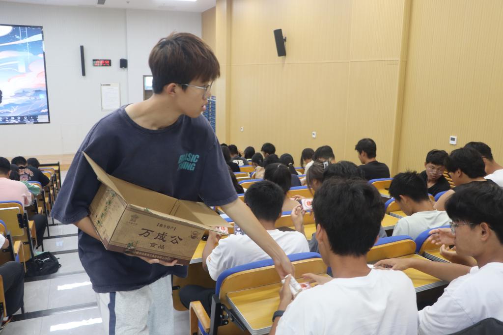 此次活动分为辅导员寄语、分发特色月饼及新生才艺展示三大环节。活动在武玉龙辅导员的热情致辞中拉开帷幕,武玉龙代表学院热烈欢迎新生的加入,并致以最诚挚的中秋祝福。武玉龙深情寄语,强调大学时光的宝贵,鼓励新生珍惜青春,积极学习,勇于探索;同时倡导团结友爱,共建和谐校园。他还特别叮嘱新生假期安全,祈愿大家中秋快乐,平安祥和。随后,分发月饼环节将活动推向高潮,学院为每位新生送上定制“校徽”月饼,寓意团圆与祝福,让新生在美味中感受学院关怀与节日温馨,共品“相思寄明月”的浪漫情怀。最后,新生才艺展示环节将整场活动推向了最高潮,同学们自信登台,分享家乡风情,展示才艺绝技,歌声悠扬、舞姿曼妙、乐器精湛,赢得师生热烈掌声。