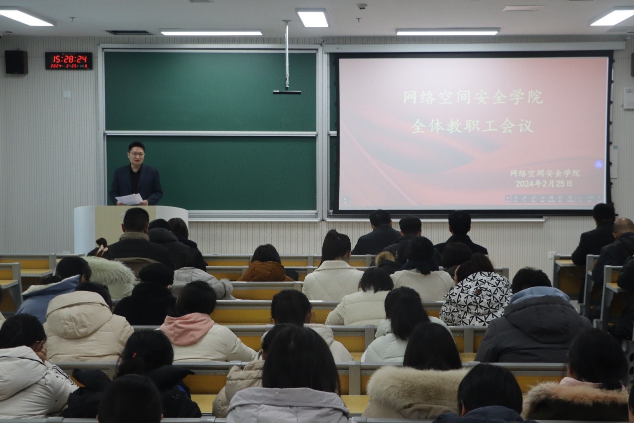 本次教职工大会的召开,进一步明确了学院新学期工作重点和发展方向,增强了教师工作的积极性和教师团队的凝聚力,希望全体教师以敢担当的宽肩膀,扛重任的硬作风和能成事的真本领,推动更多工作争上游、创亮点、走在前、开新局,努力建设一流网安学院,为实现国家高水平科技自立自强提供人才智力。