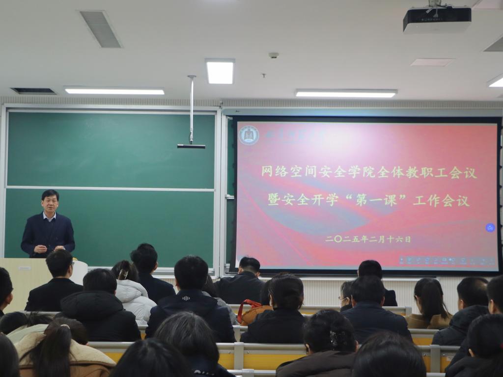 全体教职工会议暨安全开学“第一课”工作会议于格物楼B107顺利召开。学院党委书记田云飞、院长王茂励、副书记范瑞红、副院长马旭及全体教职工参加会议。