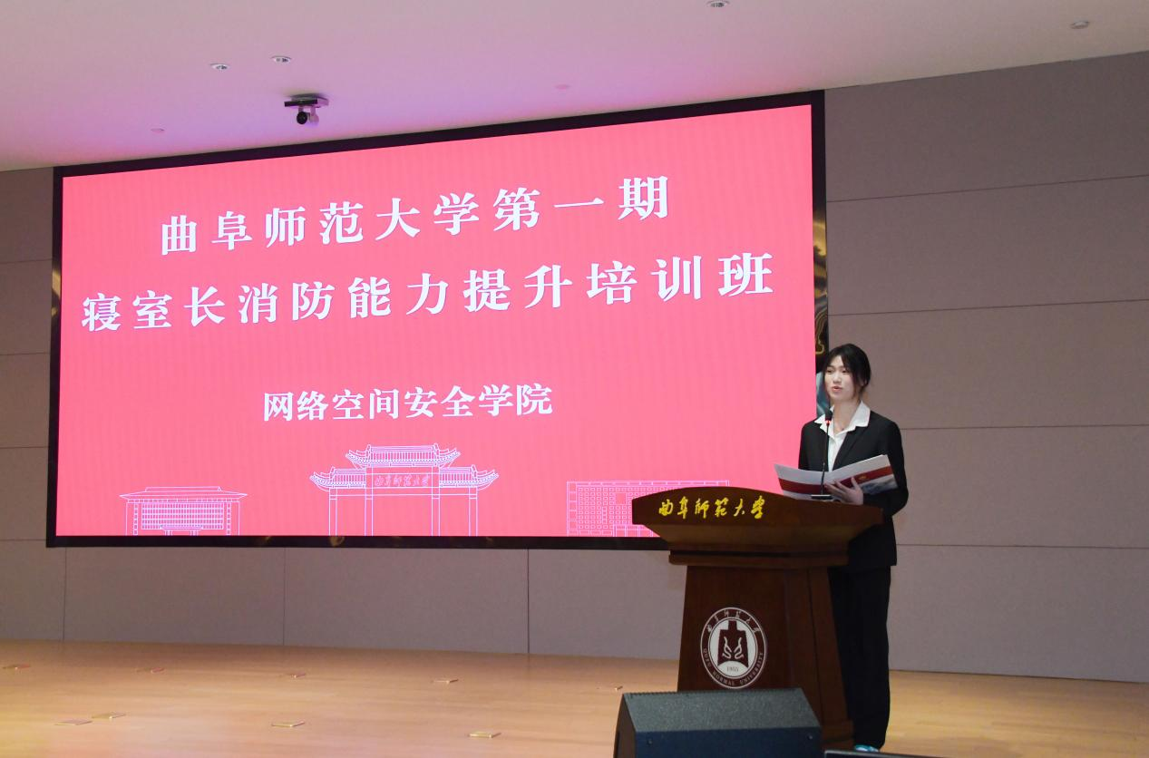 培训班开班仪式由保卫处处长胡一杰主持,学生工作处处长姜美颖及相关部门负责人,曲阜市消防大队相关负责人以及网络安全学院部分师生出席活动。