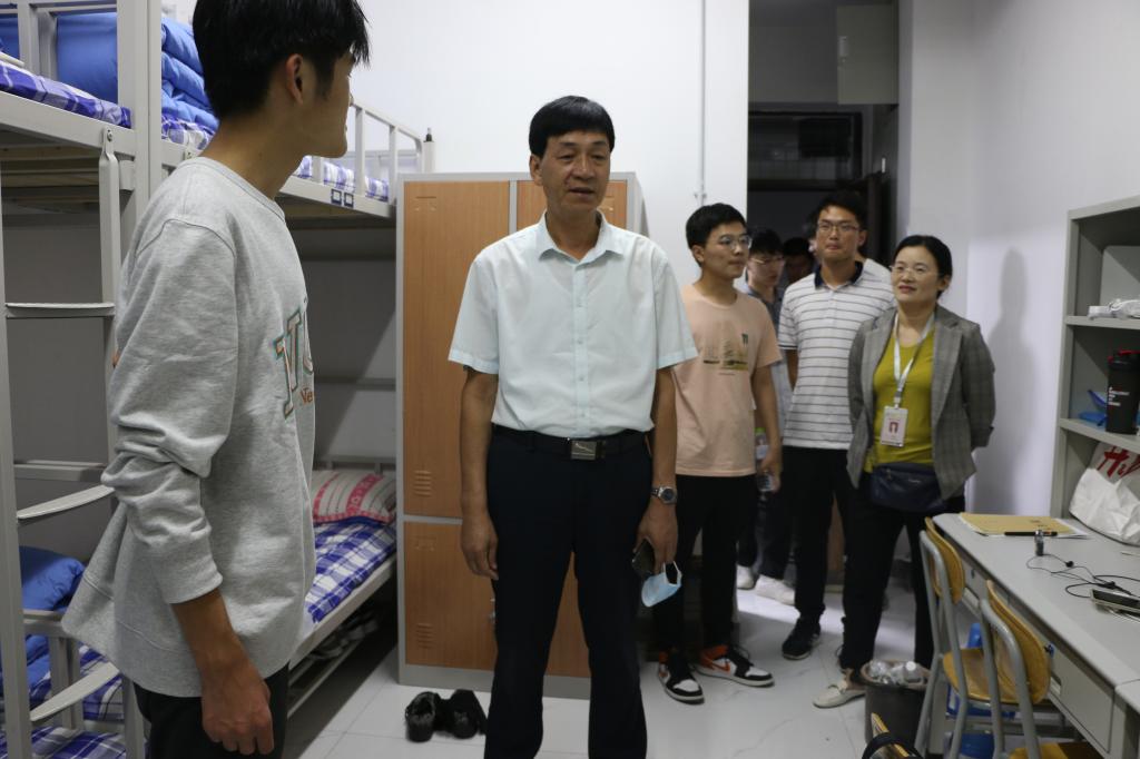 走进宿舍后,田云飞书记详细询问了新生们来校生活的适应情况以及存在的困难,勉励同学们在接下来的军训中刻苦训练,锻炼体魄,奋勇争先。在未来的学习生活中更要志存高远、脚踏实地,刻苦学习,提前规划,争取学有所成。倪院长希望同学们能够利用这次军训,提高纪律意识,增强集体荣誉感。从整理好自己的内务做起,踏踏实实做好每一件事情,用积极的心情迎接每一天。范老师、洪老师、武老师也表达了对同学们的关心,叮嘱同学们要按时休息,为军训养精蓄锐,同时也希望大家尽快熟悉和融入大学生活,为新的大学生活努力奋进。