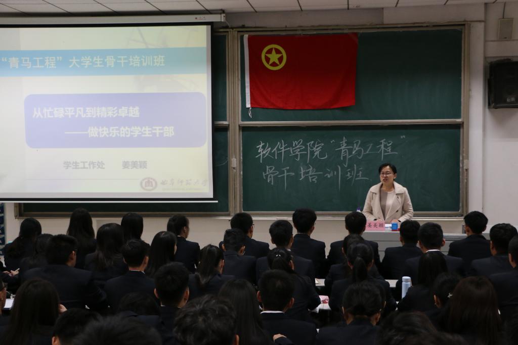 11月27日下午,软件学院2019—2020学年“青马工程”大学生骨干培训班第二次课暨第29期团校于综合楼506教室成功开讲。学生工作处处长姜美颖老师应邀主讲,团委书记范瑞红老师主持。