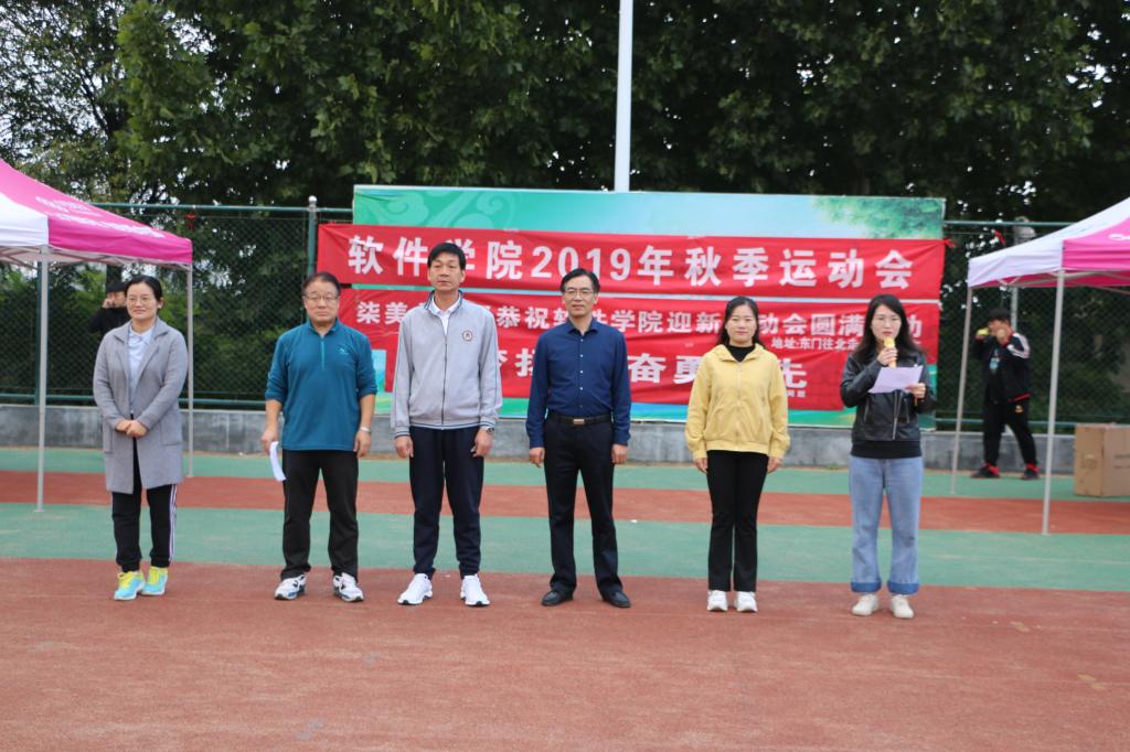 软件学院运动会在西操场成功举办。软件学院党委书记田云飞、党委副书记田凯、副院长倪建成、团委书记范瑞红、辅导员郑风华、洪亚玲出席开幕仪式。辅导员郑凤华主持,2019级全体学生参加。