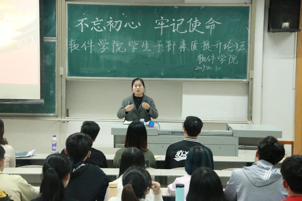 10月30日下午,软件学院学生干部素质提升论坛在综合楼406顺利进行,软件学院团委书记范瑞红、辅导员洪亚玲出席本次会议并讲话,学生会主席张鑫主持本次会议。