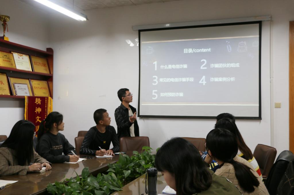 为提高学生安全防范意识,杜绝校园诈骗情况的发生,10月20日下午,软件学院信息安全部组织2017级和2018级班团在国学院会议室举办了防诈骗安全教育宣传活动,2018级学生刘源担任本次活动主讲人。