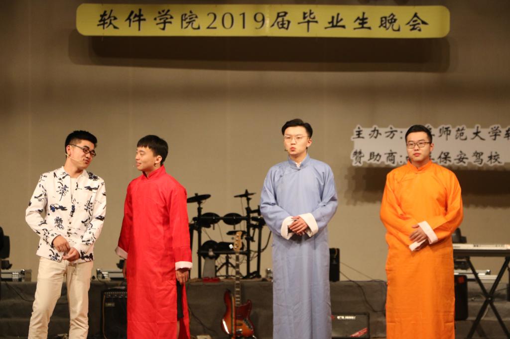 晚会在青春洋溢的舞蹈中拉开帷幕,悦动的舞姿让大家感受到青春时代的美好与活力。党委书记田云飞向即将圆满完成大学学业的2019届毕业生致以最热烈的祝贺,向勤恳奉献的全体老师表达了最衷心的感谢,并表示入学以来,2015级全体同学创造并奠定了软件荣誉,运动场上四连冠的传奇,国家学科竞赛中的诸多荣誉,在校园文化,科技创新,社会实践服务,创业创新等方面,更是做出了骄人的成绩,最后寄语毕业生们:前路漫长,希望大家不忘初心,坚守青年一代的良知与责任;树立终身学习的理念,多读书籍,增长见识,学做最好的人;以豁达的态度面对困难,宽容的心胸容纳挫折。“大鹏一日同风起,扶摇直上九万里”,愿2019届毕业生直挂云帆,乘风破浪,勇敢启航。