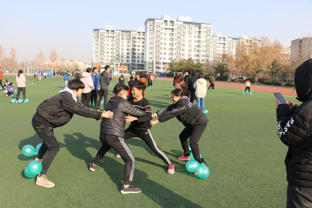 总结大会中,副主席于睿哲、体育部部长白光源分别发表讲话,他们对冬训队员们的毅力表示肯定和赞赏,并希望在下一年春训时能再次看到大家。在教练代表候金铭对冬训进行总结,候教练表达了自己和同学们在此次冬训里的收获后,白光源部长宣布趣味运动会正式开始。比赛分为绑腿跑、跳大绳、踩气球大作战和夹气球折返跑四个项目。尽管寒风凛冽,同学们依然兴致盎然,认真进行热身等赛前准备,在跳大绳、踩气球比赛中玩的不亦乐乎,竞赛氛围激烈又不失轻松愉快;绑腿跑和夹气球折返跑项目的比赛异常激烈,各队队员之间的紧密合作也充分得到了体现。同学们将青春的光芒发挥到极致,诠释了“友谊第一比赛第二”的良好竞争原则。比赛结束后,各训练队队长分别为王震、单桂友等优秀队员颁发“优秀训练队员”奖状,所有参赛选手合影留念,趣味运动会圆满结束。