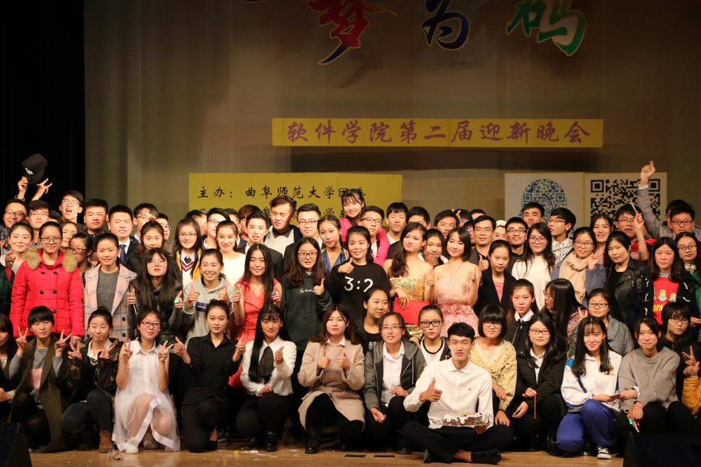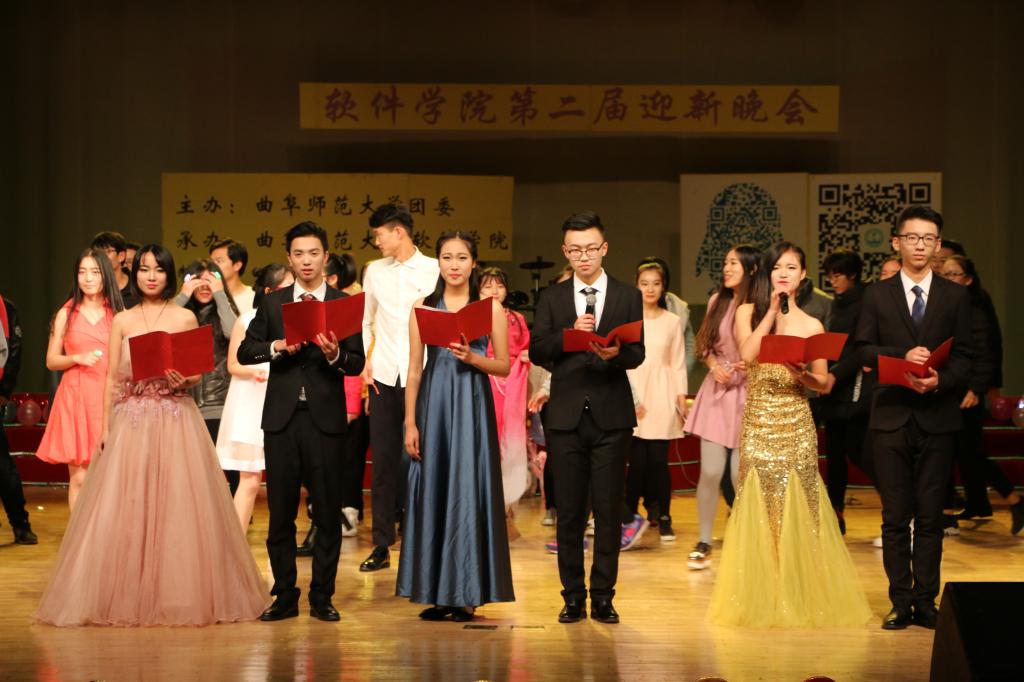 流光溢彩迎新夜,心心连新齐飞扬。为迎接2016级新生,融洽同学关系,展现软件学院昂扬向上的精神风貌,11月11日晚6:30,软件学院在大学生活动中心礼堂举办了以“以梦为'码',莫负韶华”为主题的迎新晚会。出席此次晚会的学院领导有软件学院常务副院长高仲合 ,教学科研负责人倪建成,团委书记杨正运,辅导员郑凤华。参加此次晚会的还有学生会成员以及2016级全体新生。