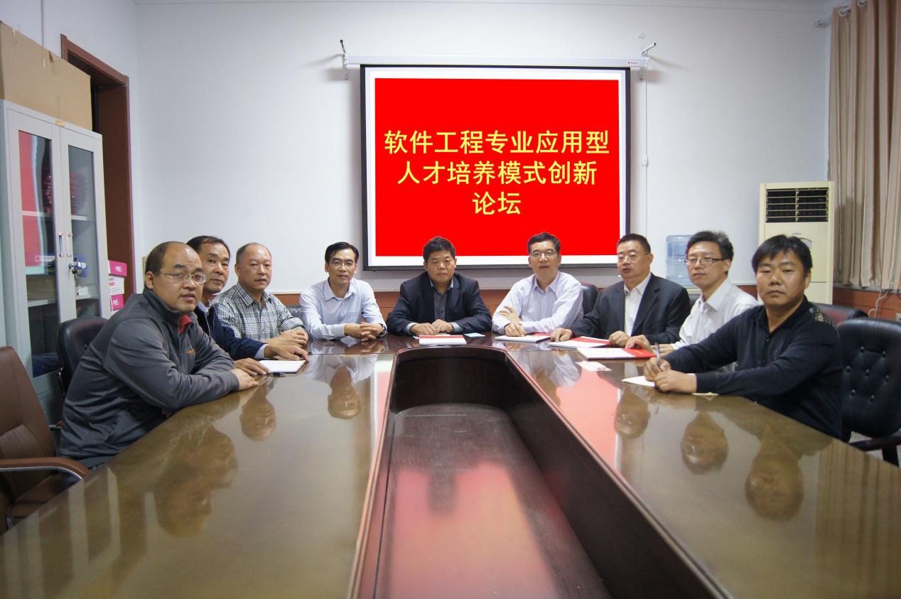 60周年校庆之际,10月16日下午,驻济宁高校软件工程专业应用型人才培养模式创新论坛在软件学院会议室举行。济宁医学院信息工程学院院长孔繁之、济宁学院计算机科学系副主任吴海峰和系办公室主任杜永生、济宁职业技术学院电子信息工程系主任周卫东、曲阜师范大学软件学院常务副院长高仲合和教学科研负责人倪建成等出席本次论坛。