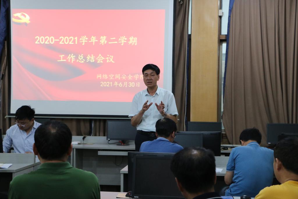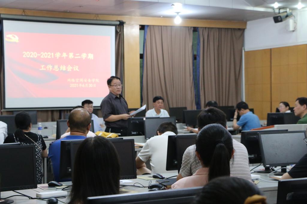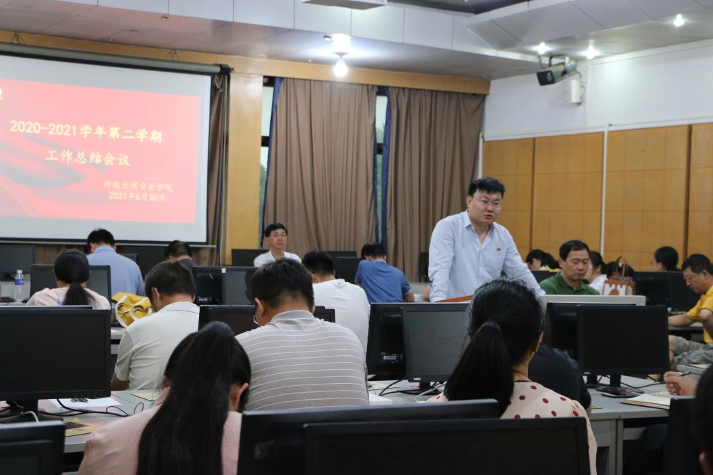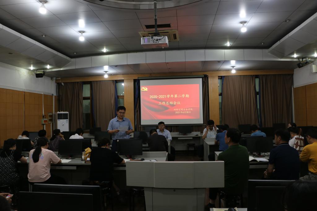 2020--2021学年第二学期工作总结会议在学院502室召开。学院领导班子成员、全体教师参加会议。学院党委书记田云飞主持会议。