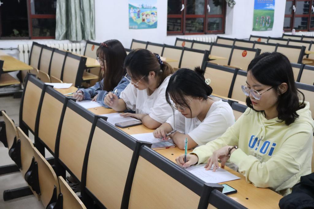 在西联二教室举办外语演讲比赛。学习部张欣瑜、姚慧思、李静雯、刘胜杰担任评委。