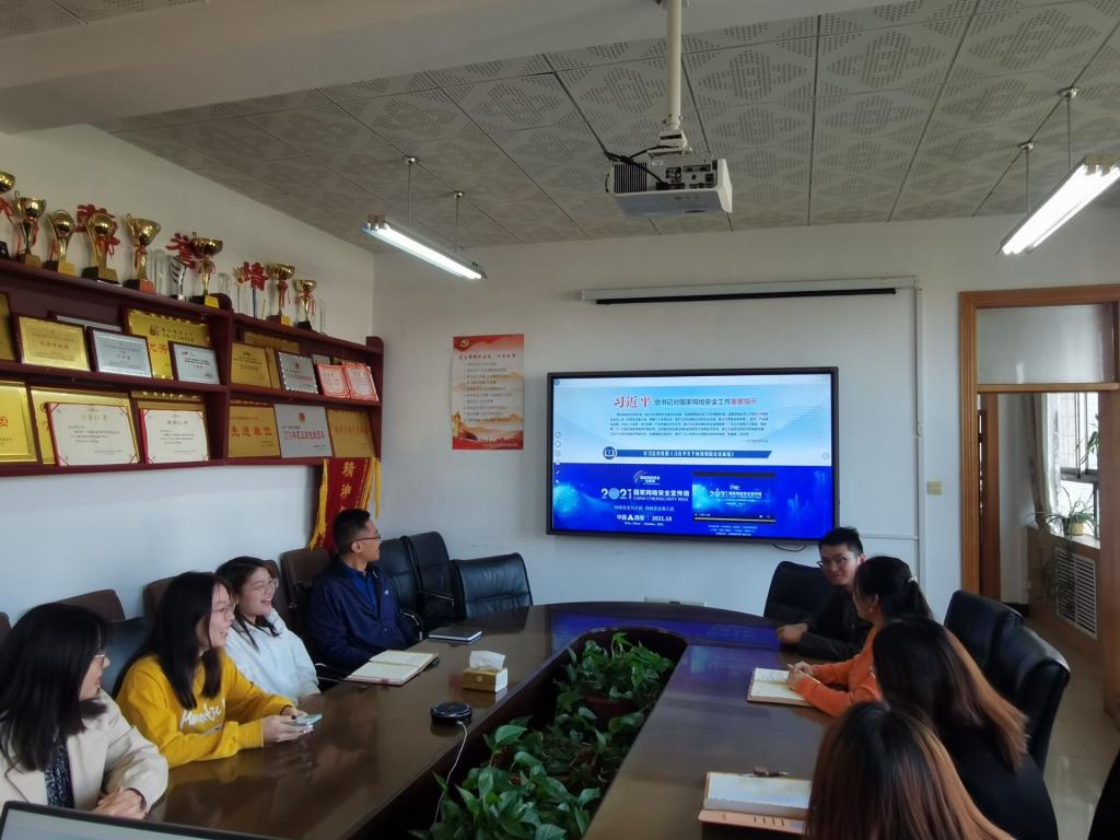 网络安全和信息化领导小组在学院会议室410开展了网络安全知识宣传普及校园日活动。党委副书记范瑞红、辅导员丁允念、洪亚玲、武玉龙、于媚媛、相青和部分同学代表参加会议。