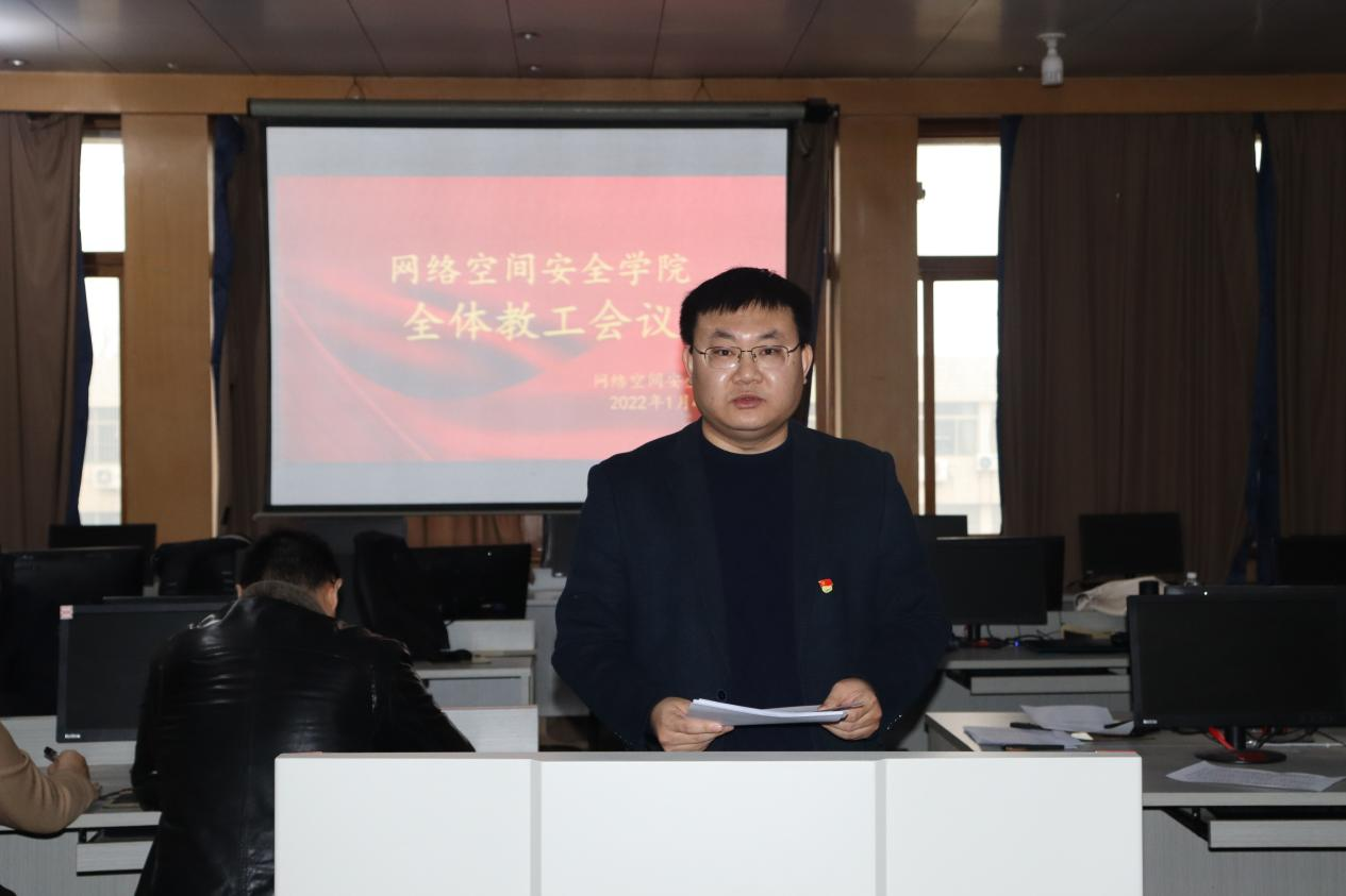 王茂励就2021年学院工作和2022年学院发展规划进行了介绍。首先,他从党建工作、学团工作、学科建设、科研团队培养、平台建设等方面详细总结了学院年度工作完成情况及成效,并就年终绩效分配进行了详细说明。随后,王茂励就常规工作、重点任务推进等方面详细介绍了2022年学院的发展规划,强调2022年学院将努力构建“重视教学、研究教学、潜心教学”的学院文化,加强学科专业、科研团队建设,为“十四五”规划建设目标的实现提供有力支撑。