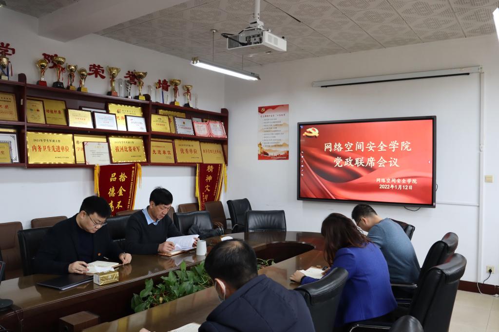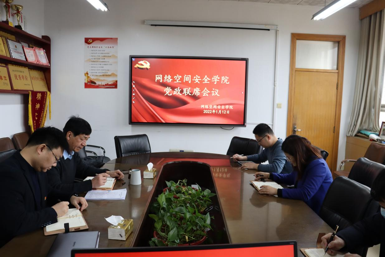 于410会议室召开党政联席会,研究近期重点工作,学院党委委员参加会议,会议由学院党委书记田云飞主持。